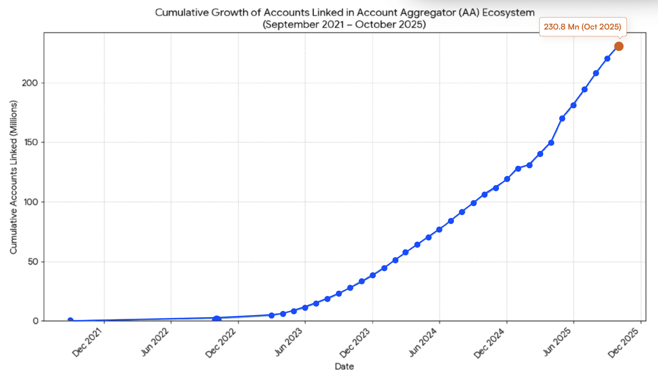 Account Aggregator (AA) has undoubtably revolutionized loan underwriting by offering faster credit assessments, enhanced fraud detection, and borrower-preferred journeys. This graph further elaborates the significance and speed of AA adoption.